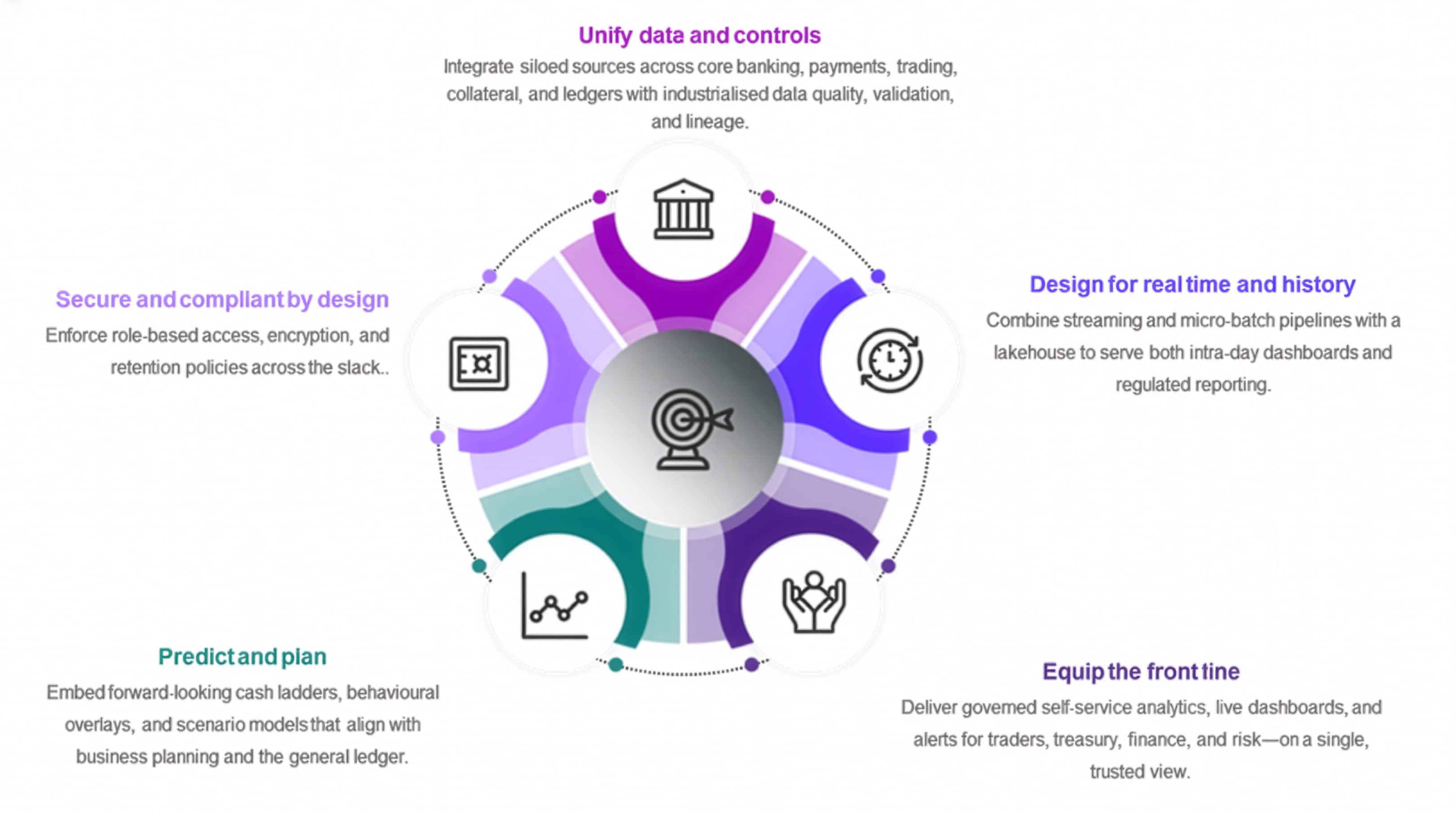 Unite fragmented liquidity data into one real-time control plane— by delivering a modern, outcome-led architecture that unifies your data, equips the front line, and embeds governance by design.