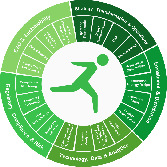 From defining strategic direction and integrating ESG principles, to optimising investment and distribution models, strengthening compliance and risk frameworks, and unlocking the power of technology and data, we provide end-to-end support tailored to the unique needs of asset managers.