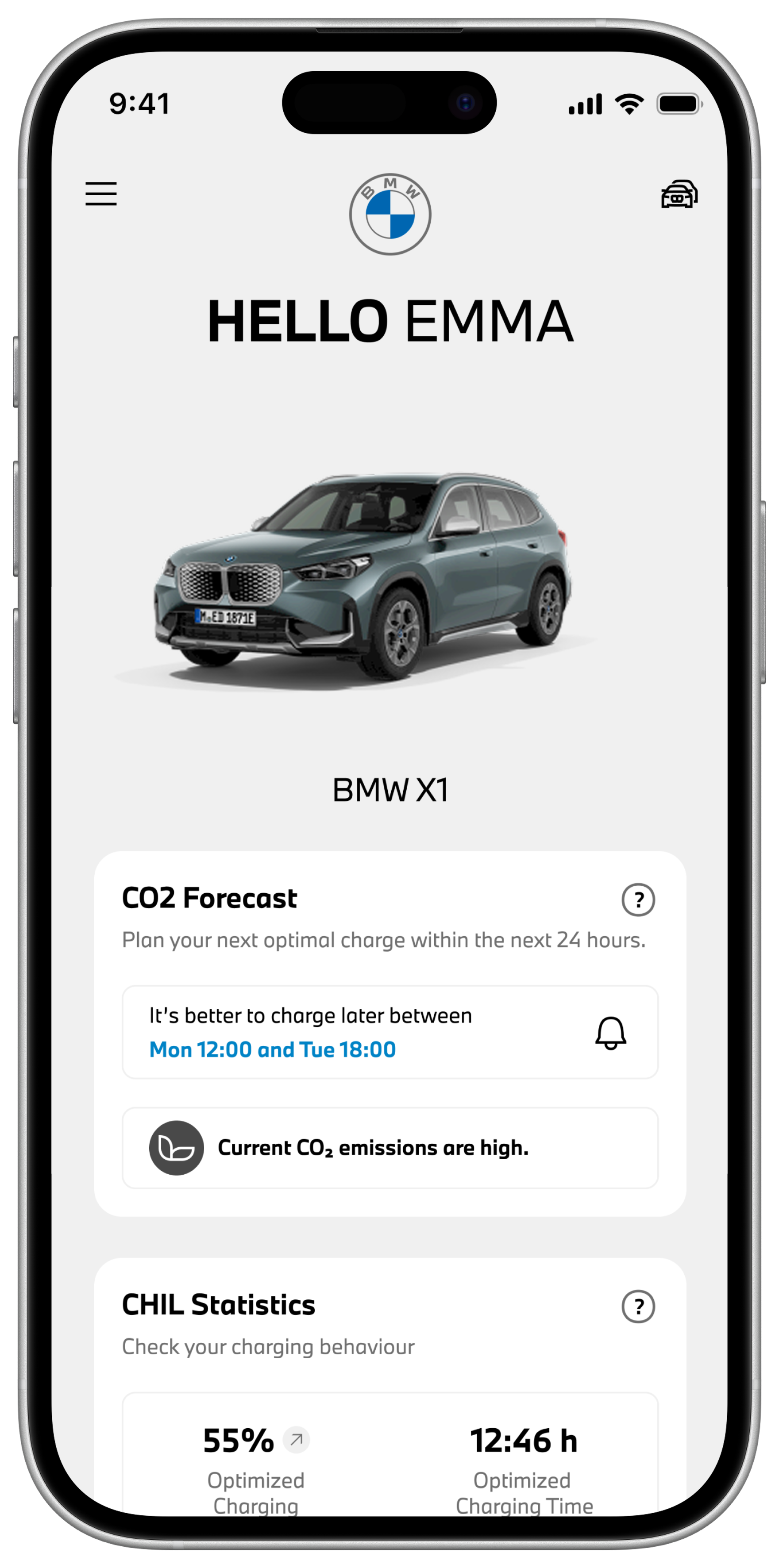 Spark Reply hat das komplexe Thema CO₂-Intensität verständlich aufbereitet und eine klare, intuitive User Experience konzipiert. Concept Reply hat auf Basis dieser Entwürfe die komplette technische Umsetzung verantwortet. Dazu gehören die Entwicklung der App, des Backends, der skalierbaren Cloud-Architektur und die Integration in die BMW-Systeme. Die App verarbeitet alle Lade- und Fahrzeugdaten anonymisiert und hält dabei höchste Sicherheits- und Datenschutzstandards ein.