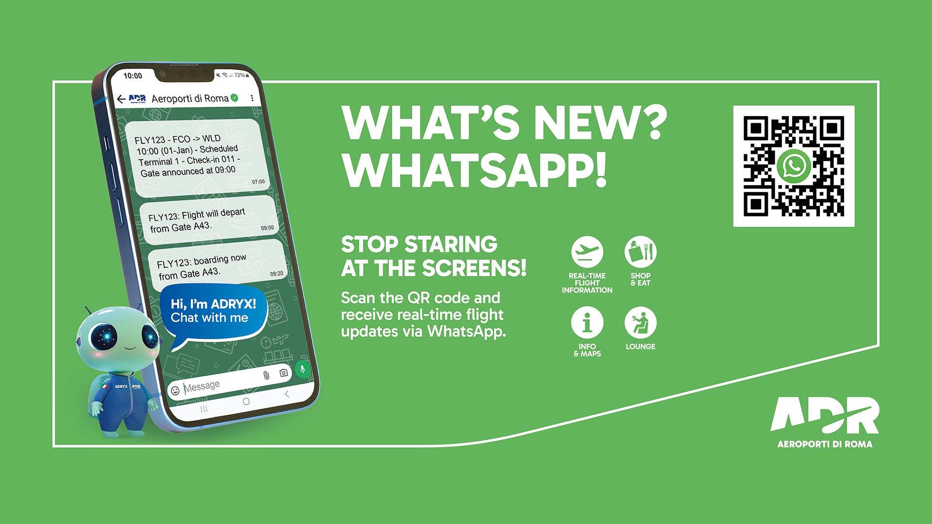 As the operator of one of the main European airport hubs, Aeroporti di Roma faces the complexity of serving an extremely diverse international clientele on a daily basis. The large volumes of traffic, characterised by seasonal and daily peaks, require digital solutions capable of scaling dynamically and providing a reliable service. The first necessity that emerged was therefore to innovate and simplify the ways in which passengers access real-time information.