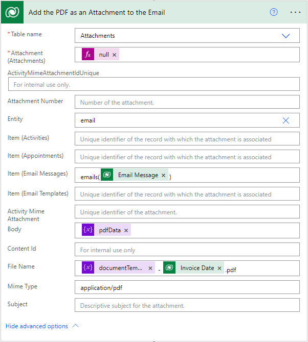 Now to the heavy lifting of the Power Automate that will generate our PDF document, create a CRM Email, and attach the PDF to the Email record automatically.