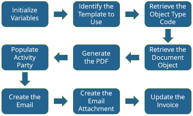 Since the Email and Attachment have been successfully created, the next step is to update the Invoice Status Reason to indicate the Invoice was Generated.