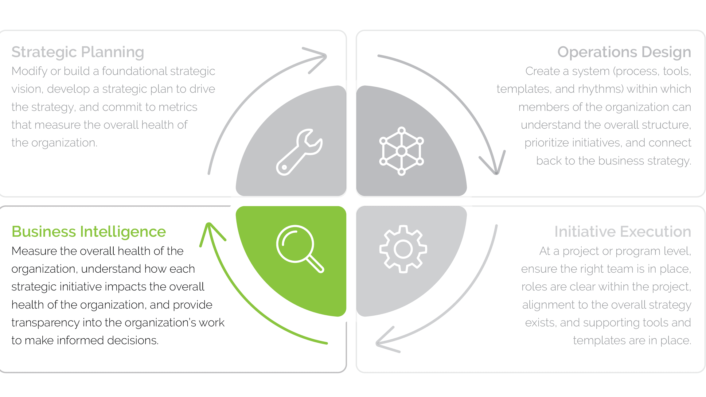 By integrating strong analytics and reporting into your organization, you can gain the business intelligence necessary to succeed in meeting your objectives. When you invest in BI, you increase visibility, drive greater accountability, foster cross-team collaboration, make more informed decisions, and decrease risk within your projects. By leveraging BI to inform your strategic planning, Spur Reply's business operations framework comes full circle.